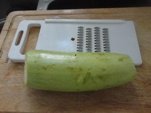 1. 准备食材:将角瓜洗净去皮去籽,切成细丝;猪肉切成末;青菜洗净切碎;葱姜切末。